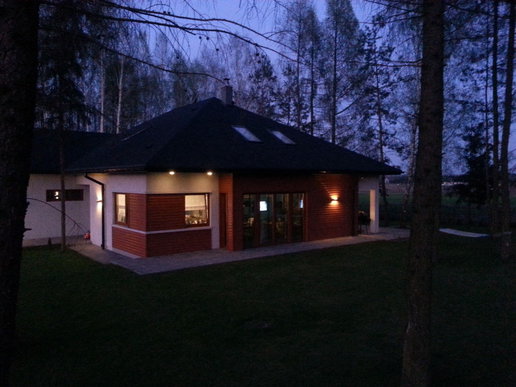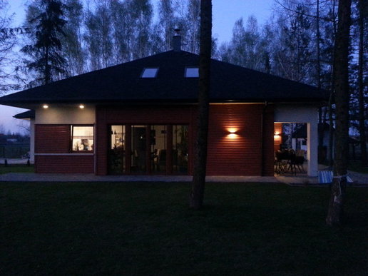 W układzie funkcjonalnym wprowadzono kilka zmian: zlikwidowano ściankę oddzielającą salon od reszty domu oraz przeszkloną wnękę w korytarzu, a także zmieniono wielkość niektórych okien.