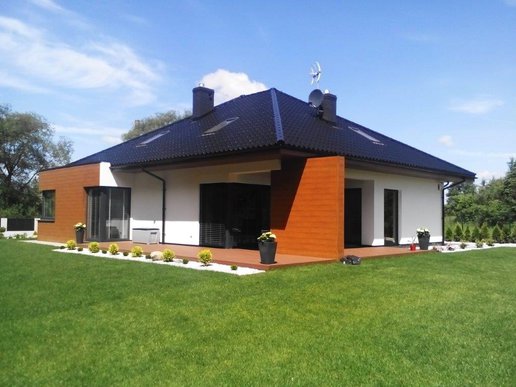 Duże, narożne okna nadają wnętrzu słoneczny charakter. Dużą zaletą domu jest przestronna jadalnia oraz wygodna kuchnia zachwycająca swoją funkcjonalnością. Atrakcyjną częścią jest także przytulny salon z kominkiem. Strefę nocną tworzą dwa pokoje, dwie wygodne łazienki oraz komfortowa sypialnia z wyjściem na taras. Zwolennicy bliskiego sąsiedztwa przyrody docenią ciekawie zaprojektowany taras, który kreuje czarujące połączenie domu z ogrodem. Elegancki charakter Margaret G2 podkreśla ciepłe drewno zastosowane na elewacji. Istnieje możliwość adaptacji poddasza na cele mieszkalne.