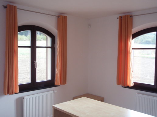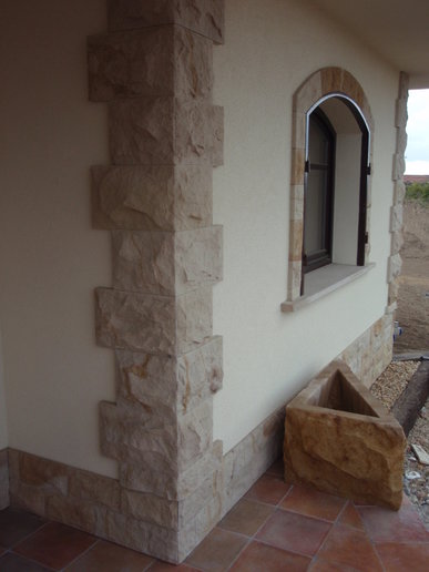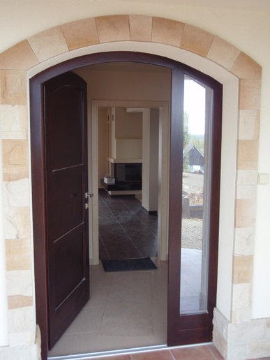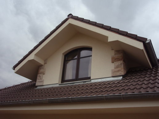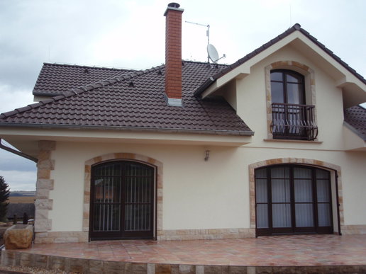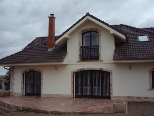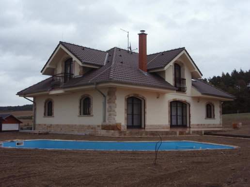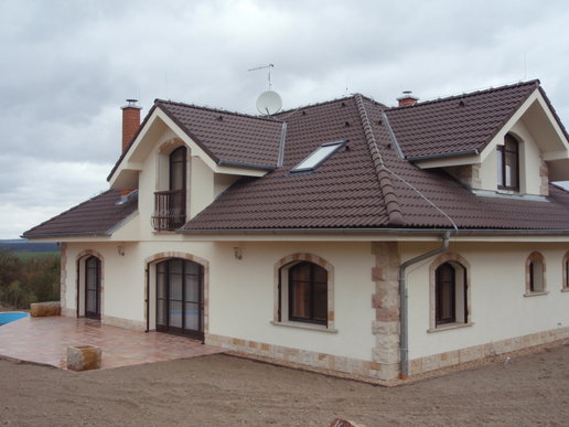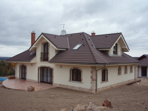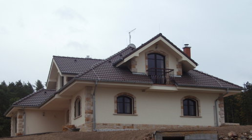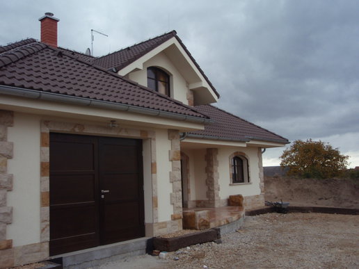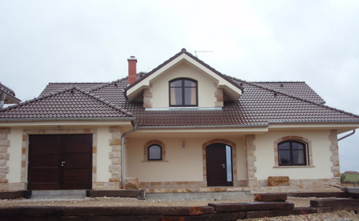 Właściciel wybrał dom murowany tradycyjnych technologii budowlanych. Do budowy były wykorzystywane bloki z cegły o grubości 45 cm. Dom jest ogrzewany poprzez  połączenie grzejników podłączonych do kotła gazowego, ogrzewanie podłogowe (w łazienkach) oraz ognisko z gorącego powietrza wylotowego. Kolor fasady i okien dachowych to pomysł właściciela. Zostały wybrane głównie naturalne materiały, takie jak np. okładzina z piaskowca. Dzięki różnorodności materiałów i odcieni użytych na elewacji domu uzyskano jego charakterystyczny wygląd.
