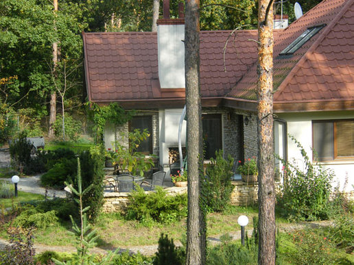 Prezentowana realizacja projektu "Oliwia" robi wrażenie. Budynek, mimo zastosowania w centralnej części szeroko osadzonego kopertowego dachu oraz masywnego komina nie wydaje się być ciężki. Lekkości całej bryle dodają od strony tarasu duże przeszklenia, przez które wpada znaczna ilość światła doświetlającego wnętrze, a od strony wejścia wykusz z wydłużonym pasmem elewacji z okładziną. Całość ciekawie uzupełnia mocno podkreślona krawędź dachu. Dom powstał w województwie mazowieckim w 2008 roku. Właściciele nie wprowadzili zbyt wielu zmian w stosunku do oryginalnego projektu. Wielkość i ilość okien została zmieniona oraz zlikwidowano funkcję pomieszczenia zaplanowanego jako garaż, a bramę garażową zastąpiły okna.