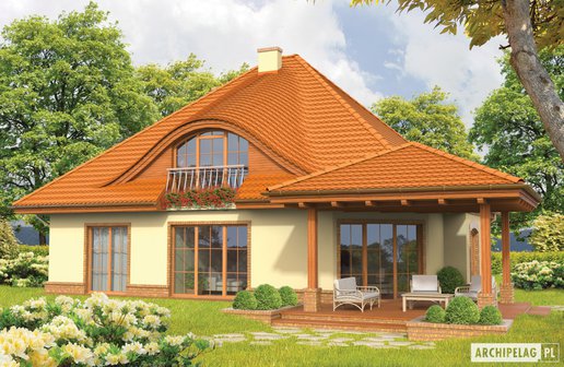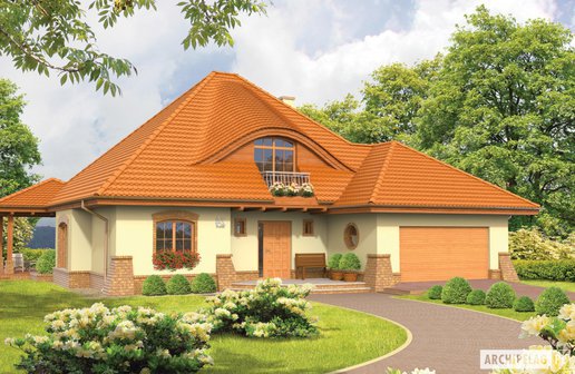 Seweryna (mała) G2 to dom stworzony z myślą o inwestorach ceniących oryginalną architekturę oraz sprawdzone i wygodne rozwiązania. Niepowtarzalny charakter projektu buduje rozrzeźbiony dach z lukarnami w kształcie wolich oczu, które nie tylko zdobią, ale także powiększają powierzchnię pomieszczeń na poddaszu.