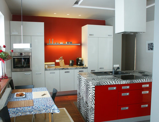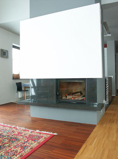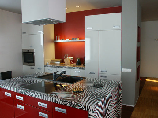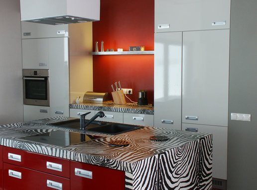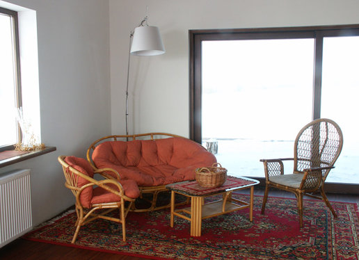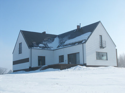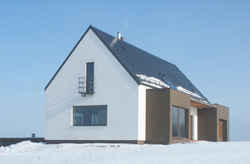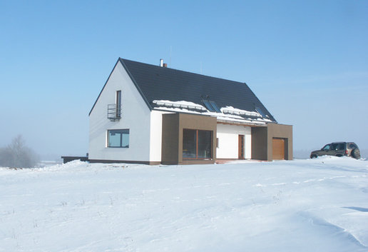 Właściciele "Stanisława" od samego początku myśleli o domu nowoczesnym o prostej bryle najlepiej z płaskim dachem. Z tego ostatniego niestety musieli zrezygnować - ich działka bowiem znajduje się na terenie parku krajobrazowego i gmina nie wydałaby pozwolenia na budowę takiego domu w najbliższej okolicy. Pozostawało znalezienie projektu który łączyłby dach spadzisty z nowoczesną i prostą architekturą. Kiedy trafili na projekty Archipelagu sprawa stała się zaskakująco prosta. ”Stanisław„ okazał się idealnym wręcz rozwiązaniem szczególnie jeśli chodzi o wygląd zewnętrzny który w trakcie adaptacji pozostał niezmieniony. Wnętrze natomiast - w stosunku do projektu oryginalnego - uległo zdecydowanej przemianie. Ich marzeniem był dom nowoczesny otwarty ze strefą dzienną będącą praktycznie jednym wnętrzem w którym nie ma drzwi a poszczególne pomieszczenia są tylko częściowo rozdzielone np. kominkiem czy schodami. W uzyskaniu takiego efektu pomogło im kilku znajomych architektów i od samego progu widać że udało się to w pełni. Hol kuchnia i salon stały się praktycznie jednym pomieszczeniem z dużym kominkiem pośrodku. Dodatkowo duże przeszklenia w salonie i pustka nad nim stwarzają wrażenie naprawdę dużych przestrzeni. Naszą uwagę zwróciła szczególnie aranżacja kuchni. Zaprojektował ją jeden z architektów związanych z firmą w której pracuje pan Łukasz. W tym znakomicie przystosowanym do wspólnego goto-wania miejscu wszystko podporządkowane jest ”zebrze„ - motyw nieregularnych pasków przewija się wszędzie. Jest na kuchennej wyspie na ścianach (zebry w antyramach) na wazonach. Również poddasze wygląda inaczej niż na projekcie Artura Wójciaka. Najpoważniejsza zmiana dotyczy dużej sypialni która stała się przestronnym otwartym pokojem rodzinnym z widokiem na salon i kładką nad nim prowadzącą do malutkiego balkoniku w szczycie domu.