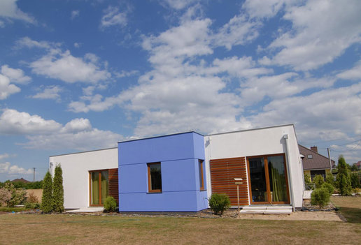 Prezentowana realizacja powstała w okolicach Wrocławia. Wśród zmian wprowadzonych do projektu autorstwa arch. Wojciecha Napierały i arch. Artura Wójciaka wymienić można likwidację okna w wiatrołapie oraz likwidację komina, brak także przypór. Doprojektowana zaś została pergola i balkon, okno na [...]
