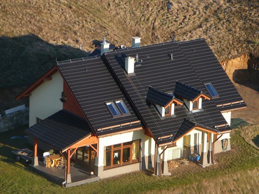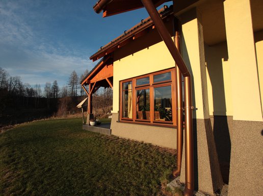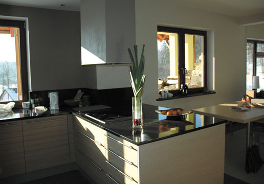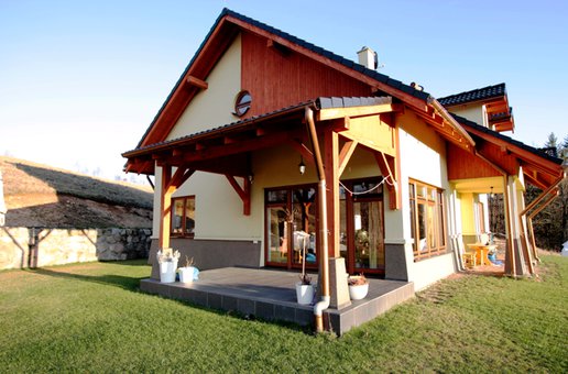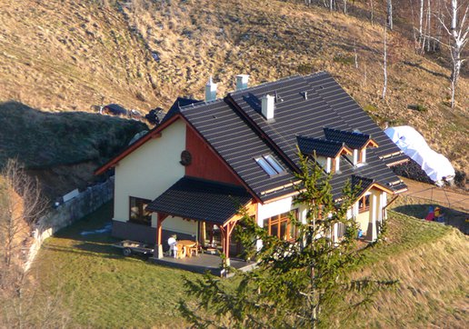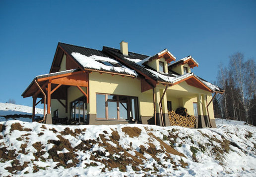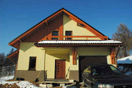 Dom w Trzcińsku został wybudowany jako nagroda dla laureatów drugiej edycji Domu Marzeń Polaka - konkursu organizowanego przez Pracownię Projektową Archipelag i dziennik "Rzeczpospolita". Prezentowana realizacja dość znacznie różni się od oryginalnego projektu co spowodowane jest przede wszystkim specyfiką działki. Napoważniejszą różnicą jest przesunięcię wejścia domu z elewacji południowej na wschodnią dzięki czemu nie tylko z salonu ale i z jadalni można podziwiać wspaniałe górskie widoki.