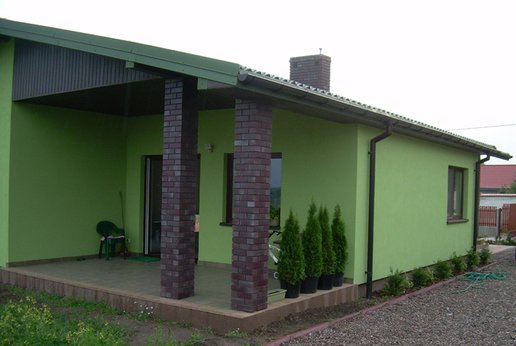 „Miła” to dom parterowy, niepodpiwniczony, charakteryzujący się bardzo prostą konstrukcją i atrakcyjną formą. Wśród zmian wprowadzonych do projektu należy wymienić: zmianę kształtu i ilości okien oraz zmianę wykończenia elewacji - inna kolorystyki i rezygnacja z elementów drewnianych. Wprowadzono także likwidację podcienia poprzez wysunięcie frontowej ściany w pomieszczeniu zaplanowanym jako sypialnia i zrównanie jej ze ścianą wiatrołapu, a także usunięto przeszklenia wykuszu w jadalni. Danuta Konieczny z firmy „DAKO” na łamach rocznika „Najpiękniejsze projekty domów” tak wypowiada się o projekcie: To bardzo prosty w budowie, niezwykle ekonomiczny, wprost idealny dom dla osób chcących tanio wybudować swój dom marzeń. Tym bardziej, ze budowa w tym przypadku może trwać bardzo krótko i zamknąć się w jednym sezonie. Projekt wyróżnia się prostotą i elegancja. Widać tu wyraźne oddzielenie części dziennej i nocnej. Przestronny pokój dzienny połączony jest z aneksem jadalnym, w którym wielkie witryny okienne pozwalają na podziwianie ogrodu czy też delektowanie się widokami aż po horyzont. W części nocnej natomiast można wyróżnić trzy wygodne sypialnie z dużymi oknami i dużą łazienkę – pokój kąpielowy. Elewacja – oprócz zaproponowanego rozwiązania – może też łączyć cegłę klinkierową z otynkowanym murem tradycyjnym. Prosty, tani dach dwuspadowy stanowi wysoką zaletę tego ekonomicznego domu. Kolejną jest zadaszenie nad tarasem, gdzie każdy z domowników na pewno chętnie wypocznie bez względu na pogodę – nie tylko dla bogaczy. Polecam.