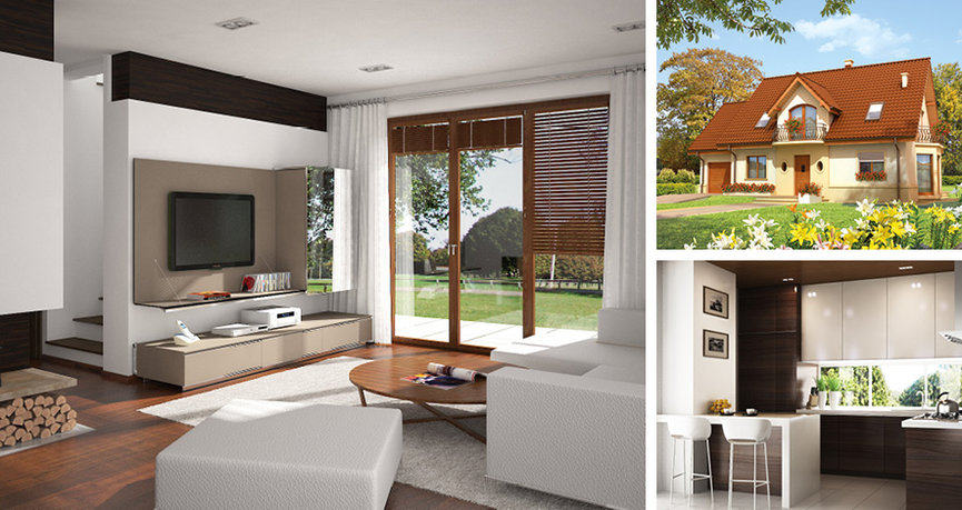 Projekt Kajka G1 to znakomita propozycja dla miłośników tradycyjnej, klasycznej elegancji oraz komfortowych przestrzeni i subtelnych połączeń. Prezentujemy przykładową aranżację wnętrz domu Kajka G1.