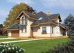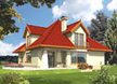 Klementynka. Dom parterowy z poddaszem nadającym się do późniejszego zagospodarowania i wbudowanym garażem niepodpiwniczony przeznaczony dla 3-4 osobowej rodziny. Strefę dzienną stanowi pokój dzienny z jadalnią oraz kuchnia. Strefa nocna to trzy sypialnie i łazienka. Prosta bryła budynku o niewielkiej ilości ścian nośnych daje duże możliwości aranżacji wnętrza. Na strychu po adaptacji można uzyskać ok. 78 m2 powierzchni użytkowej.