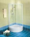 Do wyboru są kabiny półokrągłe o wymiarach 80x80 i 90x90 cm i wysokości 175 cm ze szkłem giętym hartowanym ze wzorem w kropki lub polistyrenem. Wszystkie kabiny są w kolorze białym.