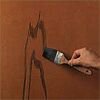 Sęki staną się bardziej widoczne jeśli powtórnie pociągniemy je pędzlem ze sztywnym włosiem lub płaskim pędzelkiem do malowania linii.