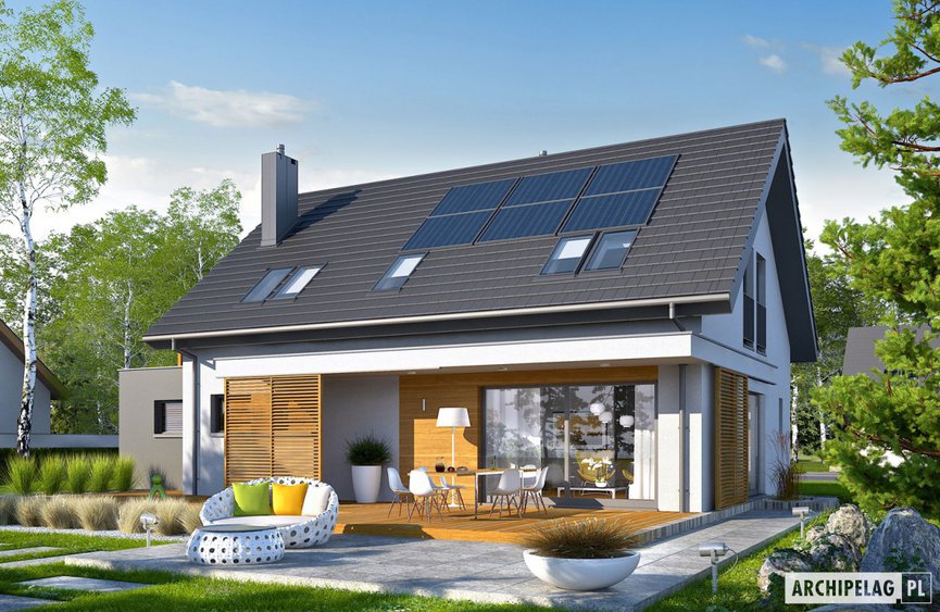 Logan to stylowa elegancja i intrygujący wdzięk. Dom, dzięki swojej prostej konstrukcji, jest szybki i tani w budowie, a przy tym bardzo ciepły i funkcjonalny. Atutem projektu jest rodzinna strefa dzienna, która płynnie łączy się z tarasem, tworząc klimatyczną przestrzeń wypoczynkową. Osobny gabinet może pełnić rolę dodatkowej sypialni na parterze. Przytulna strefa nocna na poddaszu. Rewelacyjnie doświetlone wnętrze. Modna kompozycja elewacji.