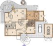 Tradycyjna bryła budynku ze spadzistym dachem determinuje rozwiązania aranżacyjne wewnątrz domu. Wnętrza zostały zaprojektowane w stylistyce wiejskiej rezydencji. To dom bardzo funkcjonalny. Znajdują się tu wszystkie pomieszczenia potrzebne dla prowadzenia wygodnego życia. Przestronny wiatrołap z garderobą prowadzi do holu znajdującego się w sercu domu - stąd można trafić do kuchni do salonu łazienki i gabinetu lub schowanej sypialni rodziców którą wyposażono w osobną łazienkę i garderobę.