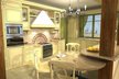 Prezentowana kuchnia ma kształt prostokąta. Obok niej znajduje się praktyczna spiżarnia. Otwarcie kuchni na salon sprawia wrażenie większej powierzchni użytkowej tego pomieszczenia. Duży blat roboczy dzielący kuchnię od salonu to rozwiązanie praktyczne - umożliwi prowadzenie rozmowy w trakcie przygotowania posiłków. Zaplanowanie płyty gazowej piekarnika oraz kuchenki mikrofalowej i praktycznego urządzenia do gotowania na parze w jednym ciągu ułatwi codzienne korzystanie z tych urządzeń. Przedstawione meble kuchenne wykonane są z patynowanego drewna akacji. Ich klasyczna linia dobrze wpisuje się w tradycyjny styl tego domu. Jasne kolory i rustyklane kafle tworzą nastrój wnętrza które przypomina wnętrze kuchni zapamiętanej z dzieciństwa.