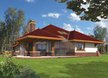 W podobnej stylistyce zaprojektowano łazienkę rodziców. Duża powierzchnia użytkowa sprawia że zmieściły się tu dwie umywalki wanna prysznic wc i bidet. Ciepłe kolory ścian współgrają ze stylową armatura sanitarną oświetleniem i dodatkami z jasnego drewna. Na piętrze domu znajdują się dwie sypialnie i łazienka dostępna z korytarza. Wszelkie pomieszczenia gospodarcze zmieszczono na parterze budynku. Tam też znajduje się garaż i wiata garażowa. Prezentowany dom to jedna z tych propozycji które potrzebują przestrzeni dla podkreślenia swojej niepowtarzalności. Duża działka i malownicza okolica sprawią że goście odwiedzający ten dom chętnie będą tutaj wracać.