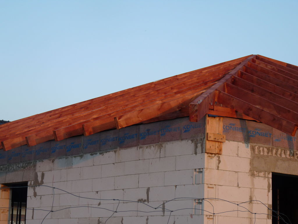 14 kubików drzewa , do tego sporo gwozdzi 3 okolo 20kg, 4 , 5 okolo 50kg, blachy plaskie 70sztuk , blachy kątowe 50sztuk ,dodatkowo pręty gwintowane 14, 16 dalismy wiecej w projekcie nie bylo ale lepiej niech się drzewo trzyma :) u dużo tego , imregnacja drzewa dodatkowa 7litrów :) by było już na lata i by korniczek się nie wprowadził. w nastepnym tygodniu dachówka cementowa BRASSA