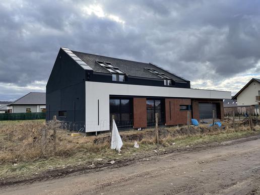 Zintegrowaliśmy już żaluzje elewacyjne z automatyką budynku i na elewacji pojawiło się oświetlenie. oczekujemy jeszcze na oprawy podtynkowe w podcieniach.