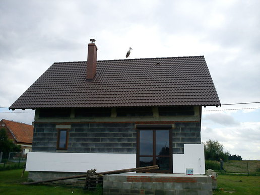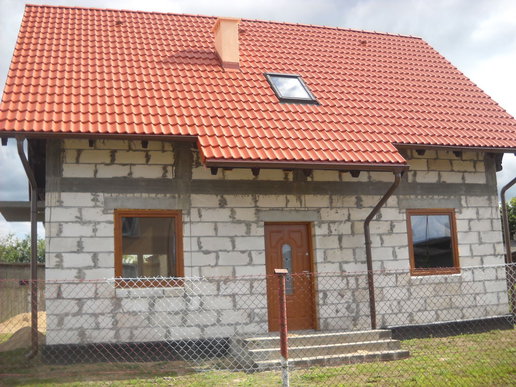 My teraz tynkujemy; mamy nadzieję, że w tym roku zrobimy podlewki i docieplenie. Zdecydowaliśmy się na styropian o grubości 14 cm.