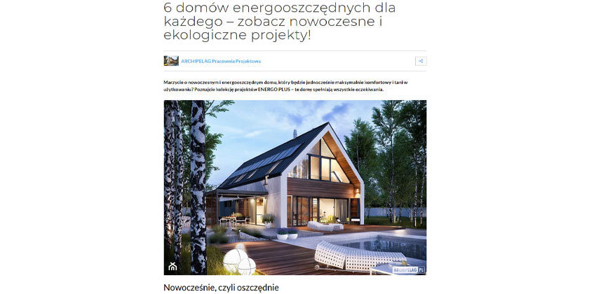 W marcowym wydaniu magazynu „Budujemy Dom” znajdziecie artykuł o projektach domów energooszczędnych, w którym jako ekspert wystąpiła architekt z ARCHIPELAGU – Katarzyna Braun-Szulc.
