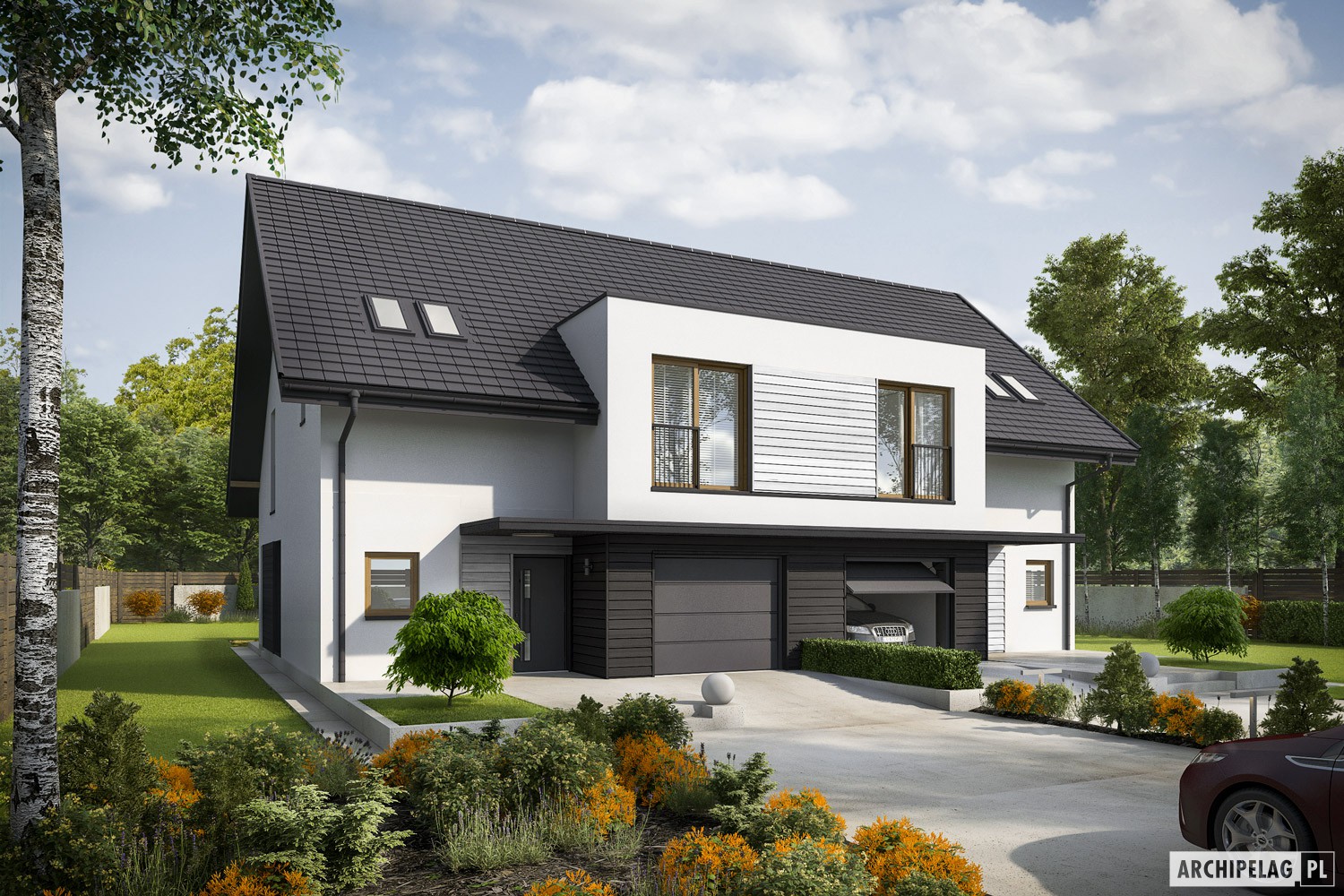 Konrad G1 ENERGO PLUS to prosty i szybki w realizacji projekt domu w zabudowie bliźniaczej. Fasadę budynku zdobią aplikacje z desek elewacyjnych Cedral Lap. W tym przypadku wybrano dwa, kontrastujące ze sobą kolory, które nadały całości niepowtarzalny charakter. Materiały Cedral są niezwykle proste w utrzymaniu, dzięki czemu można na długie lata zapomnieć o uciążliwej konserwacji i cieszyć się uzyskanym efektem. Ponadto włóknocement, z którego są wykonane jest materiałem bardzo trwałym (gwarancja wynosi 10 lat), łatwym w montażu i przyjaznym dla środowiska.