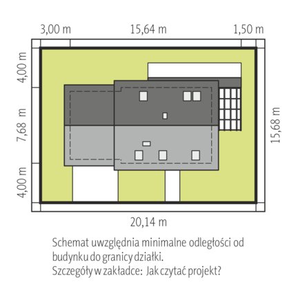 • Minimalne wymiary działki 17.68 x 15.68 m