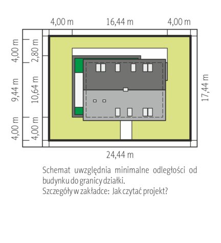 - Minimalne wymiary działki 24.44 x 23.94 m