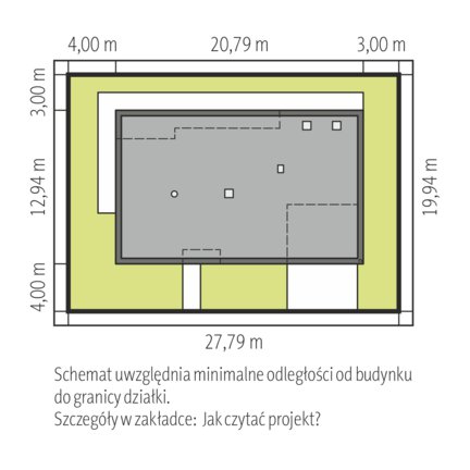 • Minimalne wymiary działki 25.34 x 19.94 m