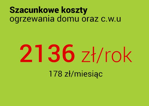 Dodatkowo można zainstalować panele fotowoltaiczne lub kolektory słoneczne - nie uwzględniono ich w obliczeniach.