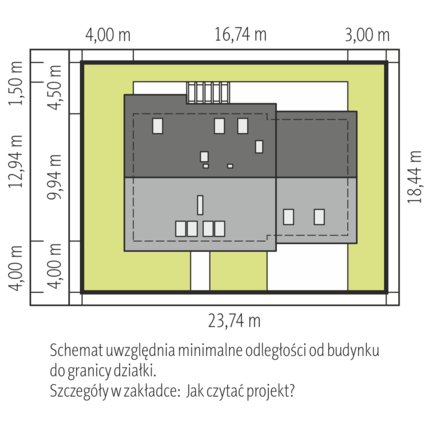 - Minimalne wymiary działki 21.34 x 18.44 m