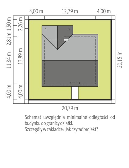 • Minimalne wymiary działki 20.79 x 26.55 m