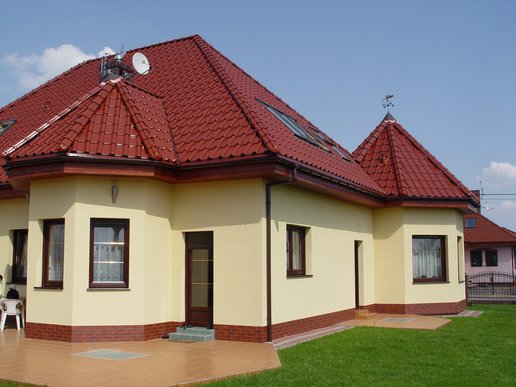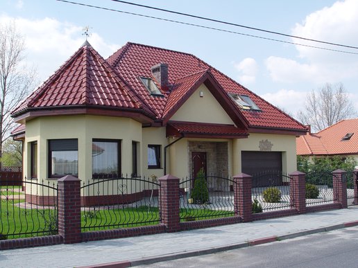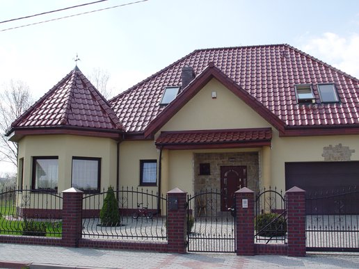 Przedstawiona realizacja „Esmeraldy (małej)” powstała w okolicach Lubina, w województwie dolnośląskim. Dach – element domu widoczny już z daleka, jest jego wizytówką. Szczególną uwagę zwraca wieżyczka i wykusze, które przyciągnęły także uwagę właścicieli domu i skłoniły ich do zakupienia projektu „Esmeralda”. Jadalnia zaprojektowana w wykuszu jest otwarta na kuchnię i salon. Drugi wykusz zaplanowano tuż obok wewnętrznego kominka, jako miejsce do wypoczynku. Na parterze znajdziemy także gabinet, toaletę i pomieszczenia gospodarcze z pralnią, które zostały połączone z garażem. Na poddaszu znajduje się strefa nocna: dwa pokoje, sypialnia z garderobą oraz przestronna łazienka. W realizacji podniesiono ściankę kolankową, co spowodowało powiększenie powierzchni poddasza. Zlikwidowano komin zewnętrzny, od strony elewacji zmieniono okno okrągłe na prostokątne oraz zrezygnowana z załamania linii dachu tworząc jednolitą płaszczyznę połaci.