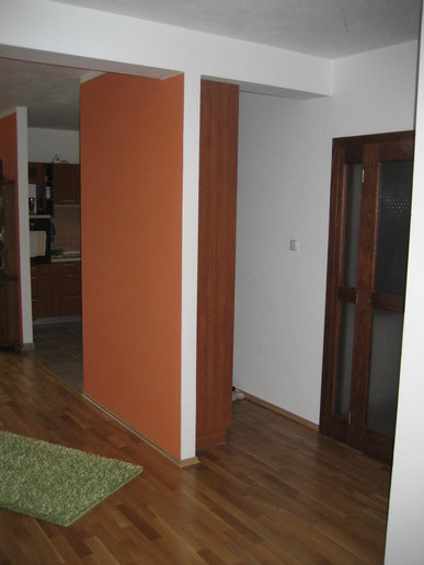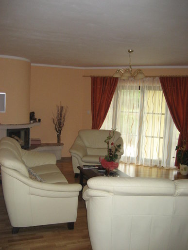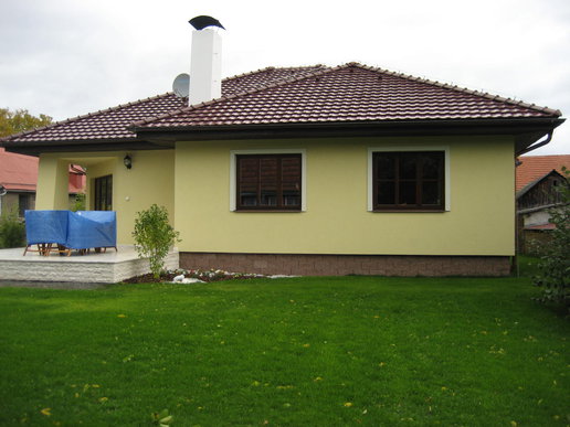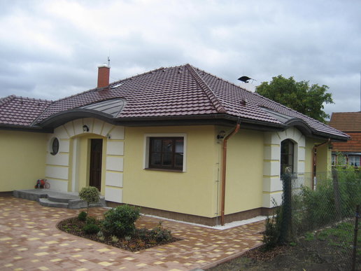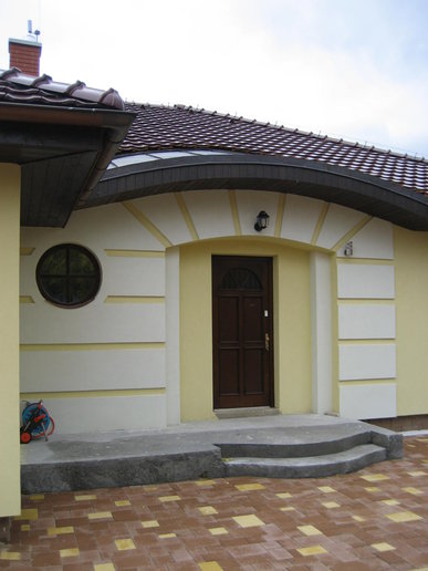 Inwestorzy początkowo rozważali zakup projektu „Zbigniew”, niestety ich działka nie miała wystarczających rozmiarów. „Kornelia” była dokładnie tym czego potrzebowali. Rozplanowanie pomieszczeń na parterze obejmuje kuchnię (z boczną spiżarnią) otwartą na jadalnię i pokój, dwa pokoje, sypialnię, łazienkę, toaletę, garderobę, pomieszczenie gospodarcze i garaż. Zastosowane rozwiązania były zatem w pełni zgodne z zamierzeniami inwestorów. Biorąc pod uwagę, że zdecydowali się nie realizować poddasza, początkowo otwarte schody zasłonili drzwiami. Innymi drobnymi modyfikacjami było zmniejszenie tarasu oraz rezygnacja z zewnętrznego kominka. Kolejnymi zmianami w stosunku do pierwotnego projektu była zamiana balkonowych okien i drzwi z wejściem do ogrodu na klasyczne okno i dzięki temu pokój jest używany jako jeden z pokoi dziecięcych. Właściciele zdecydowali się na wybudowanie domu w technologii murowanej. Wykorzystano bloki z cegły o grubości 45 cm oraz izolację termiczną - 8 cm. Połączenie jasnego koloru elewacji w ciepłych odcieniach z ciemną dachówką tworzy subtelny kontrast. Ogólne interesujące wrażenie jest spotęgowane poprzez ciekawe zewnętrzne pokrycie bruku, którego kolor harmonizuje z kolorystyką bryły budynku.