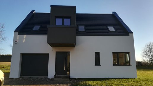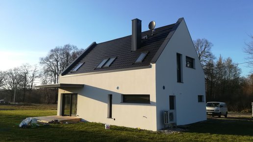 Liv 6 G1 to nowoczesny i elegancki dom dla miłośników oryginalnych detali i komfortowych wnętrz. Charakterystyczne zadaszenie tarasu oraz ciekawy wykusz od strony frontowej urozmaicają prostą bryłę budynku. Zobaczcie zdjęcia z pięknej realizacji tego domu!