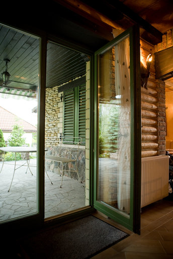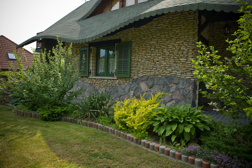 Gra drewna, kamienia i światła, wzbogacona intrygującymi dodatkami sprawia, że dom prezentuje się zjawiskowo. Stylowe okiennice harmonijnie komponują się z zielenią bajkowego ogrodu, który otula „Mieszka”. Z przyjemnością patrzymy jak nasze pomysły przeobrażają się w tak imponujące realizacje.