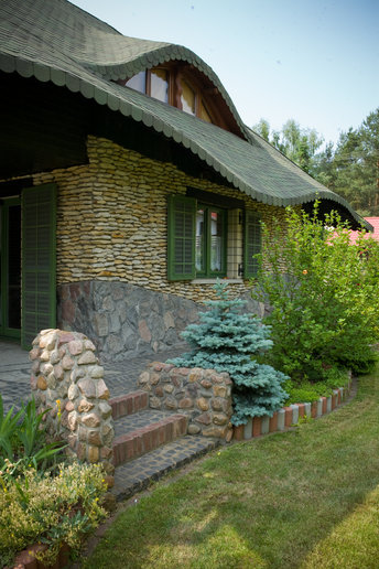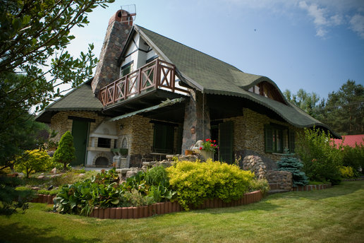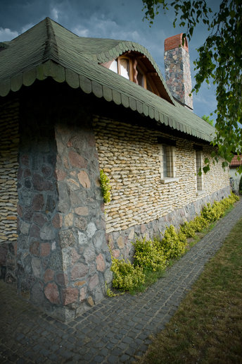 Prezentowana realizacja projektu „Mieszko” jest niczym z bajki wyjęta. Zachwycająca elewacja wykonana z kamienia pięknie komponuje się z drewnianymi detalami, wywołując efekt przytulnego ciepła.