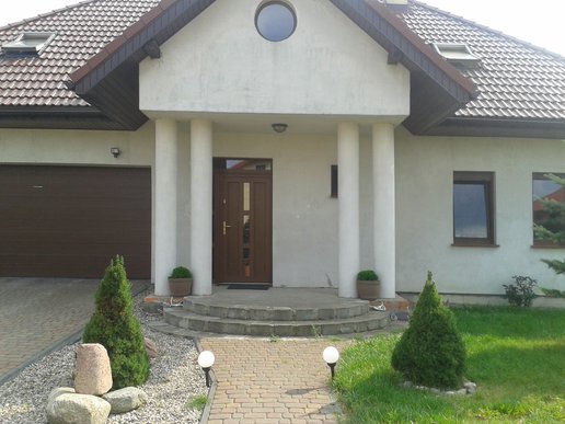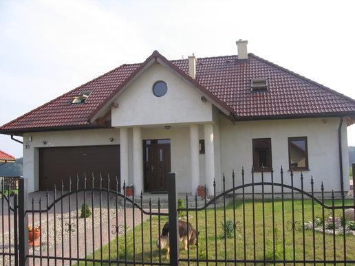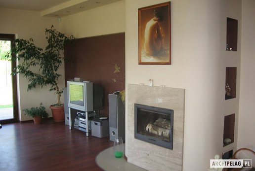 Prezentowana realizacja powstała w 2008 roku w okolicach Bydgoszczy. Inwestorom zależało na zachowaniu oryginalnego stylu domu, dlatego nie wykonano poważniejszych zmian w projekcie. Do najważniejszych modyfikacji należy zmiana lokalizacji i wielkości okien, przeniesienie jadalni w inne miejsce oraz zastosowanie kominka o odmiennym kształcie.