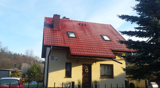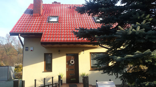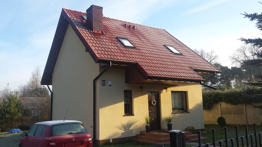 Projekt domu Celinka został dostosowany do indywidualnych potrzeb jego właścicieli. Inwestorzy zmienili wielkość i rozmieszczenie stolarki okiennej. Modyfikacji uległ także rozkład pomieszczeń oraz umiejscowienie pieca i kotłowni. Inwestorzy zdecydowali się na przedłużenie dachu nad tarasem, dzięki czemu powstała wspaniała strefa relaksu na świeżym powietrzu. Elewację zdobi ciepła, stonowana barwa tynku, która pięknie koresponduje z czerwoną dachówką i drewnianymi detalami.