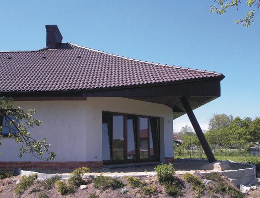 Prezentujemy realizację projektu "Wisława" w odbiciu lustrzanym. Jest to duży (blisko 200 m2 powierzchni użytkowej) parterowy dom z wbudowanym garażem i strychem na poddaszu. Dom wybudowano w okolicy Lubina (województwo dolnośląskie). W stosunku do projektu oryginalnego inwestor zmienił położenie bramy wjazdowej do garażu. Pociągnęło to za sobą także pewne zmiany w konstrukcji dachu - między innymi zrezygnowano z łukowego zakończenia jednej z połaci.