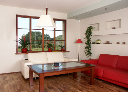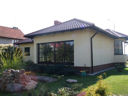 W prezentowanej realizacji wprowadzono dość poważne zmiany w stosunku do oryginalnego projektu - lukarny typu "wole oko" zastąpiono oknami połaciowymi. Nie miało to jednak niekorzystnego wpływu na wygląd domu.